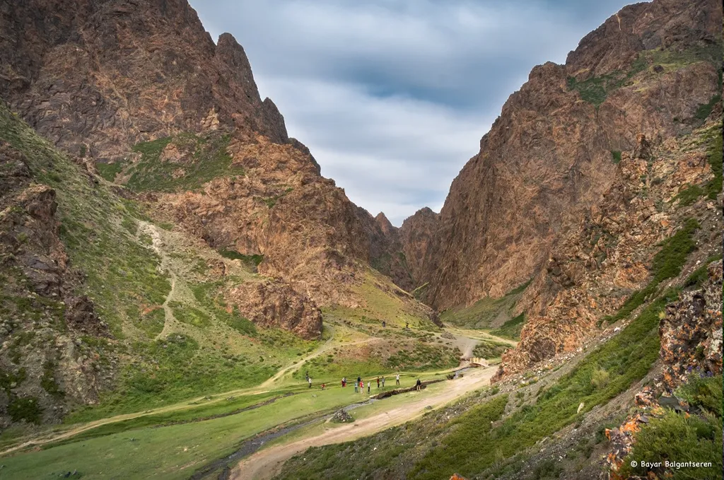 Before reaching the dunes, the journey passes through Yol Canyon, also known as the Valley of the Vultures. Nestled in the Züün Saikhan Mountains, this gorge is famous for its towering cliffs, narrow passages, and seasonal ice field that can remain until late summer. The canyon was originally protected to conserve birdlife, especially the Lammergeier (bearded vulture), which gave the valley its name. Visitors often encounter dramatic rock formations, small waterfalls, and a cool microclimate that contrasts sharply with the surrounding desert.