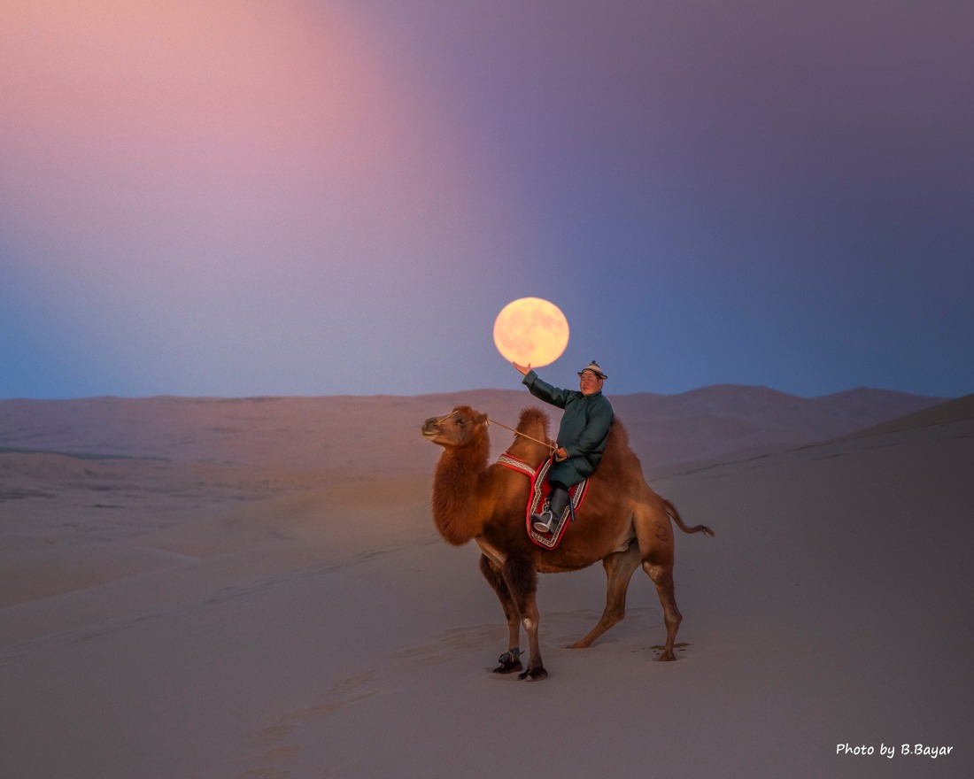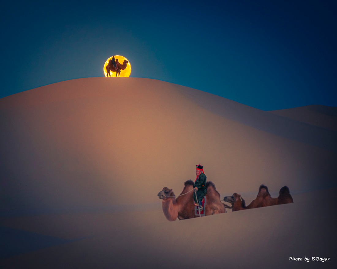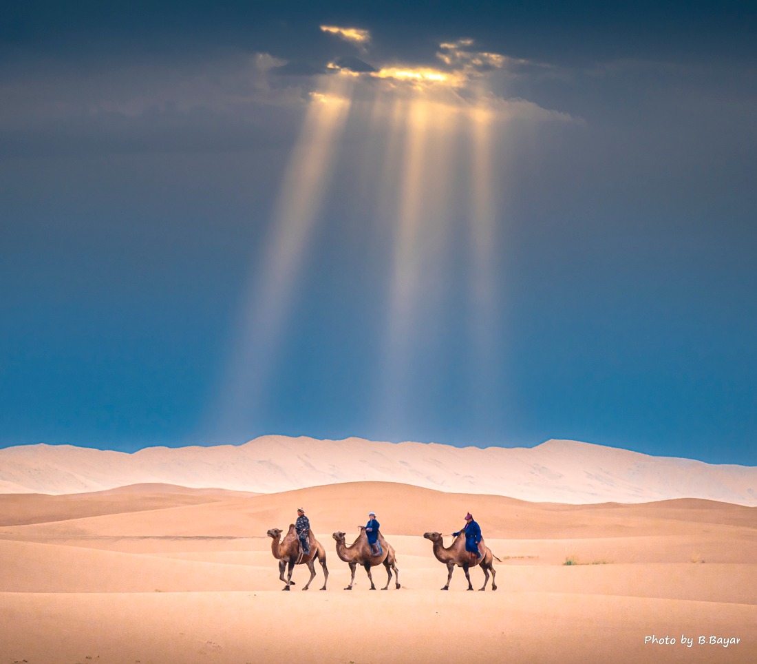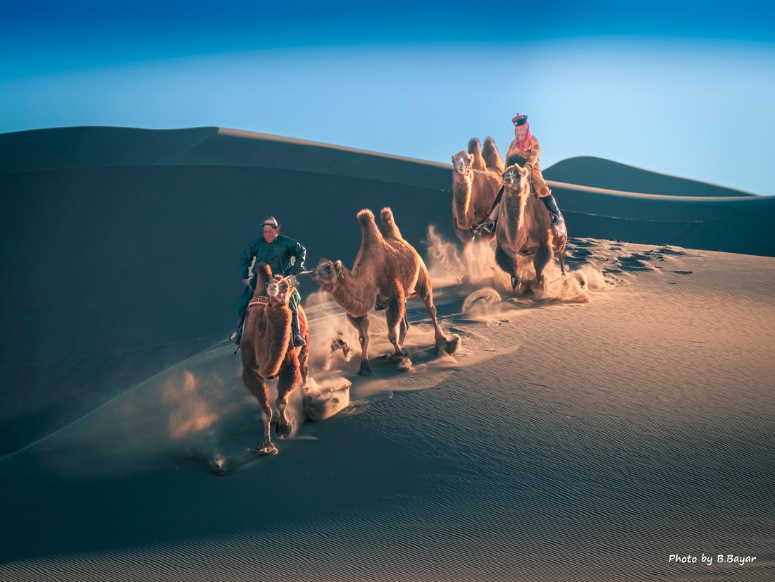 📸 Suggested Photo 2: Camel riders crossing the Gobi dunes.